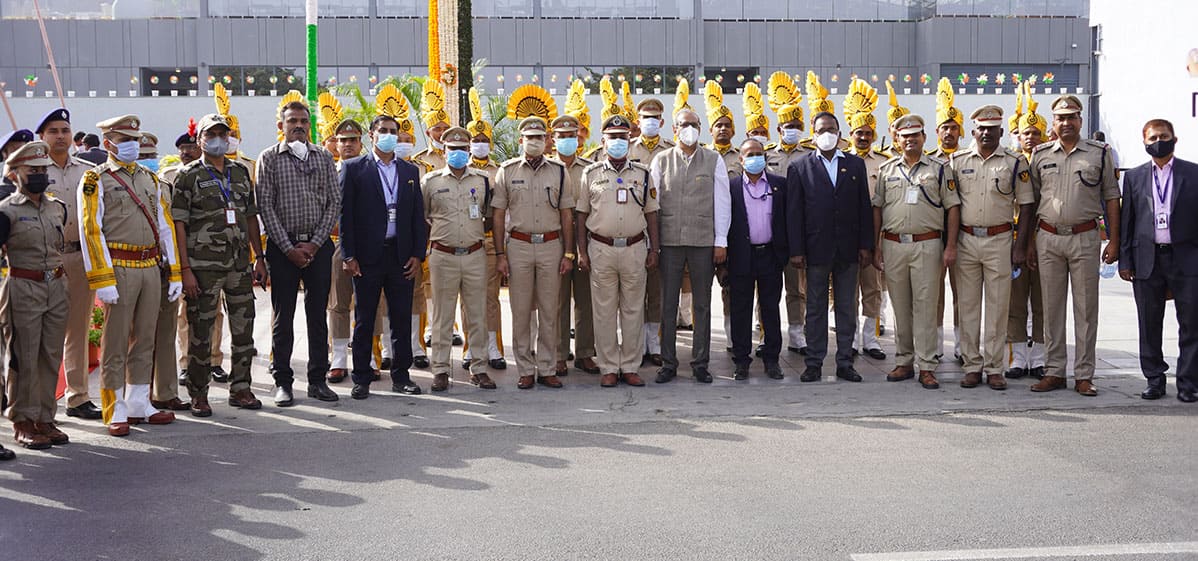 In his address, Mr. SGK Kishore recalled the sacrifices made by our freedom fighters to become free from the clutches of the colonial British rule. He also added that the aviation sector was a key contributor to the nation’s GDP and in connecting people across borders globally. Mr. Kishore, also elaborated on the robust passenger growth of over 20% YOY. He also spoke at length about the current expansion plans of the airport which once when complete would be a futuristic and tech enabled airport taking passenger experience to an altogether new level. He thanked all the airport stakeholders for their collaborative support in enhancing passenger experience and operational efficiency. Mr. Sudhir Kumar, Chief Airport Security Officer (CASO) and Commandant – CISF Unit, RGIA, also graced the occasion.